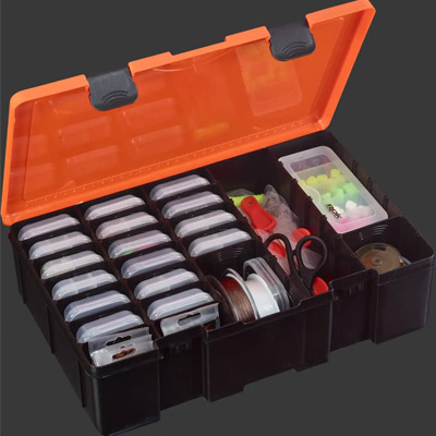 La boîte ROK 381 XL vous permettra de ranger un maximum de matériel grâce à sa hauteur de 9cm. Elle est organisée dans le sens de la largeur. Ses nombreuses cloisons vont vous permettre notamment d’accueillir des petites boites de rangement et sachets d’accessoires de type clip plomb, hameçon, perle…. Comme les modèles ROK 371 et 380, elle se rangera de manière optimale dans la ROK Crate Box 433, pour un gain de place maximal.